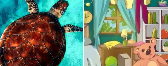 I ett till synes vanligt sovrum gömmer sig en sköldpadda, perfekt kamouflerad mot sin omgivning. Nyckeln till att hitta den ligger i att inte leta efter en djurform,.