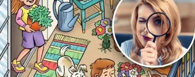 Kan du hitta fem skickligt gömda föremål – en penna, linjal, hästsko, förstoringsglas och en larv – i en mysig balkongscen på bara 15 sekunder?