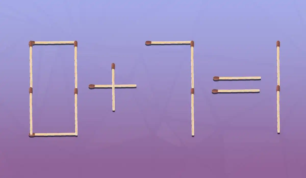 Din utmaning är följande: På bilden nedan är ekvationen 0 + 7 = 1 lagd med tändstickor. Det är matematiskt felaktigt. Din uppgift är att göra ekvationen korrekt genom att flytta exakt en tändsticka. Du får inte ta bort tändstickor, bara flytta en till en ny position. Tiden är knapp – ge dig själv bara 17 sekunder för att hitta svaret. Det lägger till en extra dimension av tidsstress som testar din förmåga att tänka klart under press.