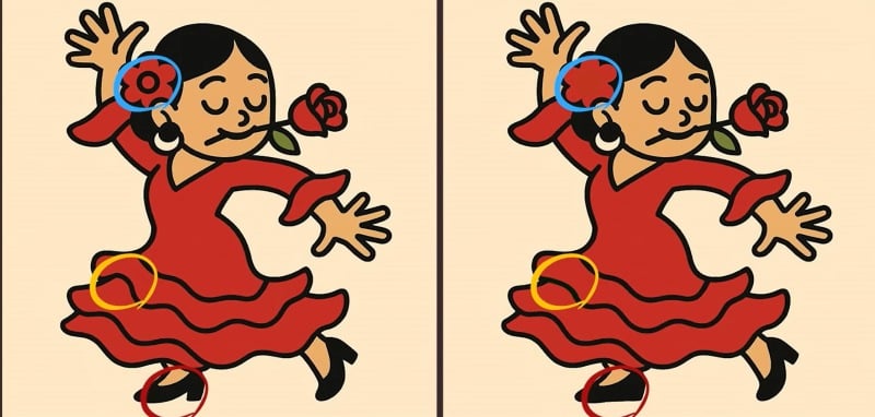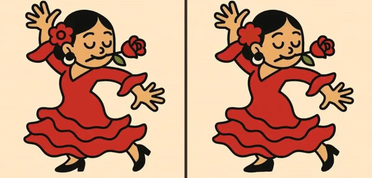 Här är ett pussel som testar din uppmärksamhet till detaljer: två bilder av en dansande flicka som ser identiska ut, men tre små skillnader är gömda mellan dem. Din utmaning är att hitta dem på bara 43 sekunder. Nyckeln är att inte stirra, utan systematiskt skanna bilderna sektion för sektion.