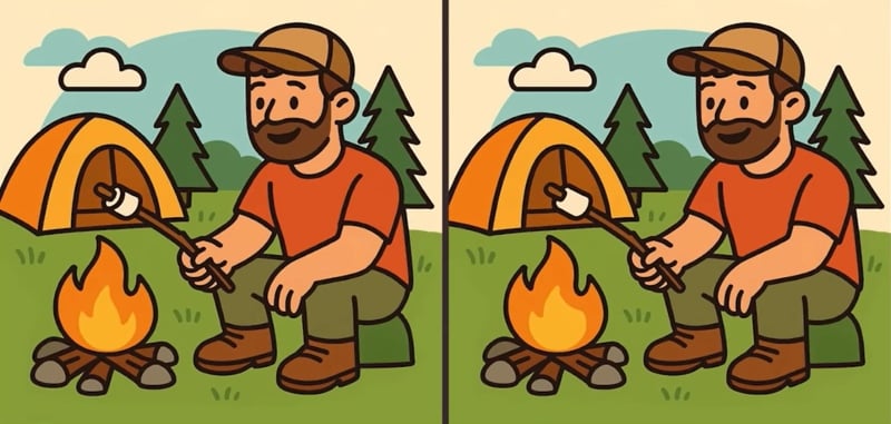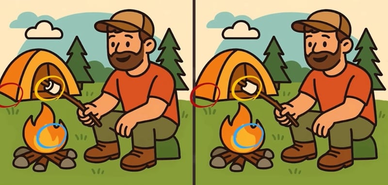 Kan du hitta de tre små skillnaderna mellan två nästan identiska bilder av en man som grillar marshmallows? Du har bara 51 sekunder på dig. Nyckeln är att systematiskt skanna bilderna, inte bara titta.