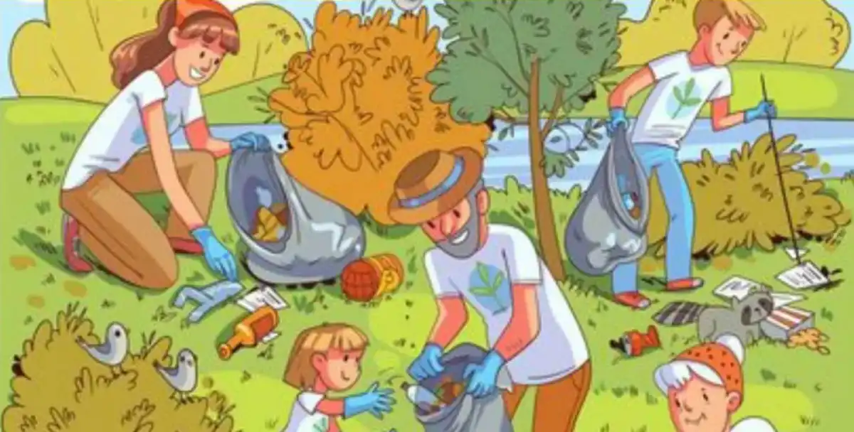 Parkliv kan vara mycket livfullt, särskilt under en städningsdag. Barn springer omkring, föräldrar plockar skräp, och nyfikna djur som tvättbjörnar tittar på från sidan. I all denna rörelse och aktivitet har en sköldpadda smugit sig in. Ditt uppdrag är att hitta den – och du har bara 7 sekunder på dig! Det här är en klassisk visuell sökuppgift som testar din uppmärksamhet och förmåga att bryta igenom synvillor. Rör sig ditt öga mot människorna och de större djuren, eller kan du fokusera på hela bilden och upptäcka det som inte hör hemma?