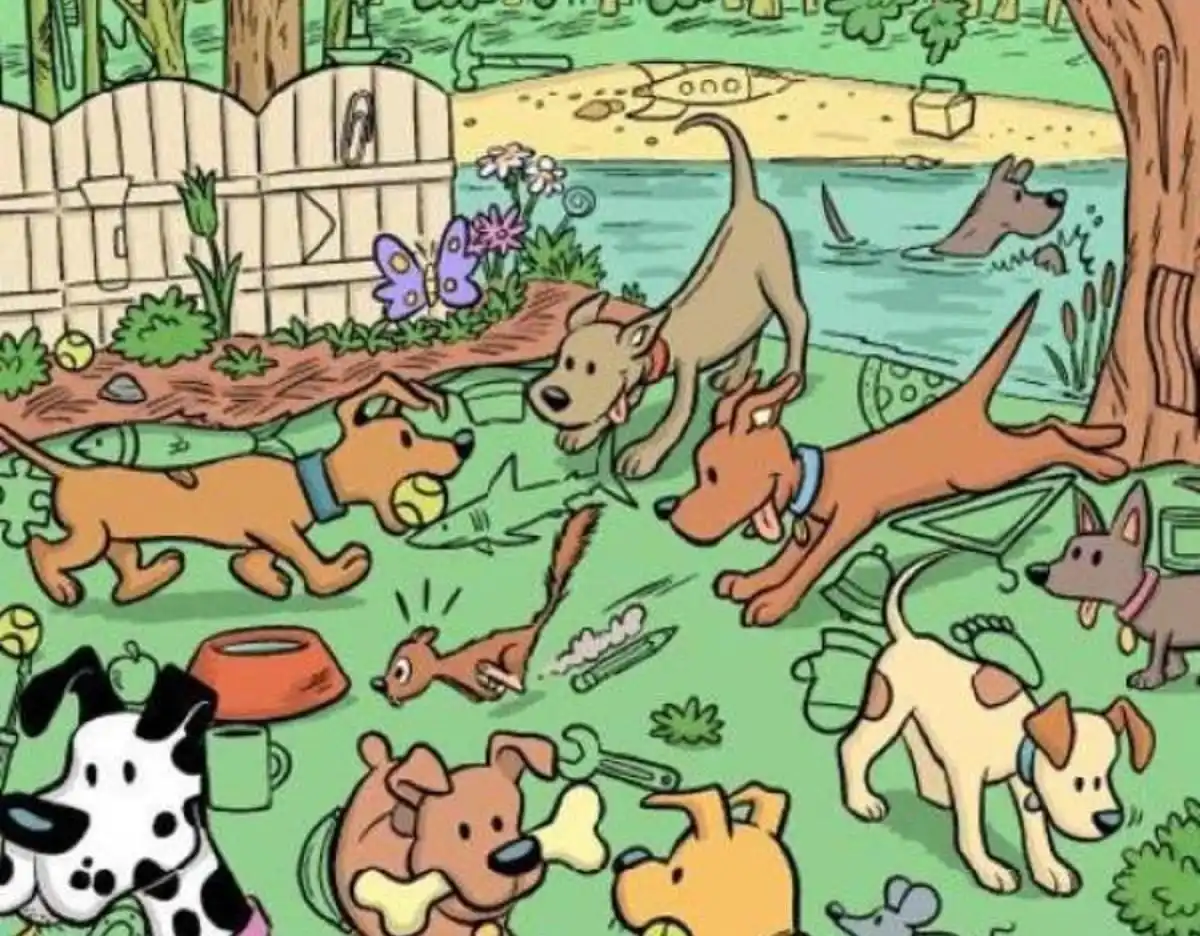 Ibland behöver hjärnan en paus från det vanliga, och inget ger en sådan mental omstart som ett bra pussel. Den här gången har vi en visuell utmaning som verkar enkel men som kräver skarpt seende och snabb uppmärksamhet. Bilden visar en livfull scen: flera hundar av olika raser leker glatt i en solig glänta. Mellan dem finns smådetaljer som en ekorre och en mus. Men någonstans i denna kaotiska lek har en magnet gått vilse. Din uppgift är att hitta den – på bara 12 sekunder. Känner du dig redo att testa din observationsförmåga?