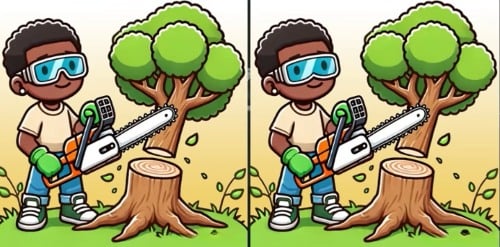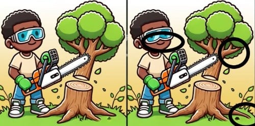Ditt mål är att hitta tre små skillnader mellan två nästan identiska bilder av en skogshuggare på bara 21 sekunder. Nyckeln är att systematiskt skanna bilderna, inte bara titta.