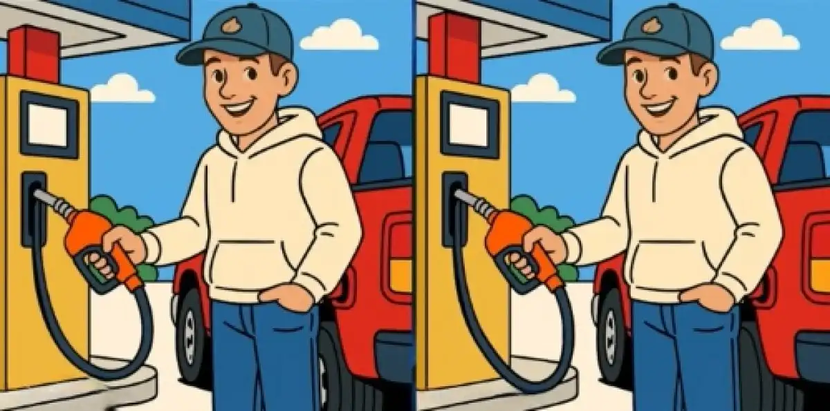 Kan du hitta de tre små skillnaderna mellan två nästan identiska bilder av en man som tankar bil på bara 39 sekunder? Nyckeln är att systematiskt skanna bilderna och inte låta dig distraheras av det uppenbara.