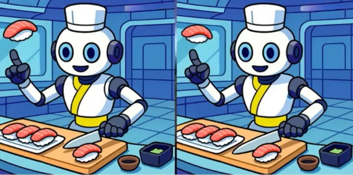 Kan du hitta de tre små skillnaderna mellan två bilder av en sushi-robot på bara 23 sekunder? Denna klassiska visuella pussel testar din uppmärksamhet och snabbhet. Nyckeln är att systematiskt skanna bilderna, inte bara titta.