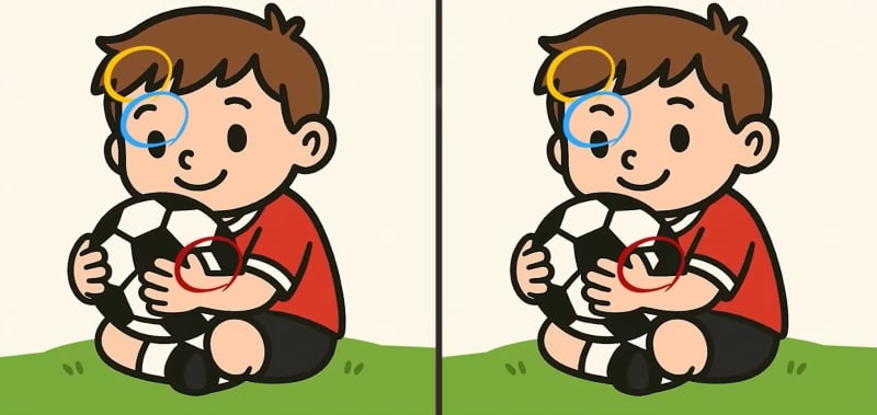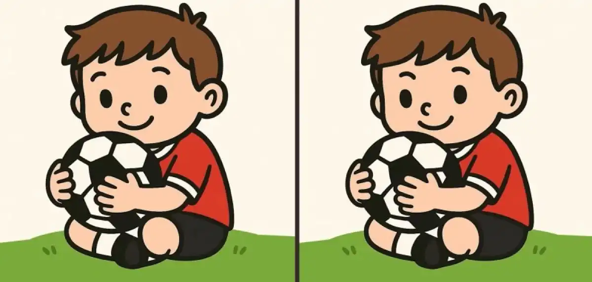 Det här visuella testet utmanar din hjärna att hitta tre små skillnader mellan två nästan identiska bilder av en pojke som spelar fotboll. Nyckeln är att inte stirra, utan att systematiskt skanna varje del av scenen.