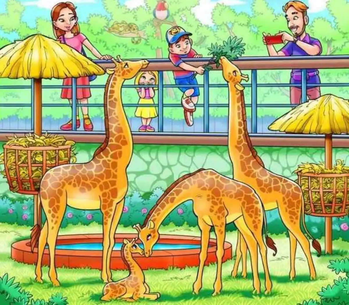 Ibland är det de enklaste pusslen som utmanar vår uppmärksamhet mest. Du står framför en scen från en familjutflykt till djurparken. Alla är upptagna: pappan filmar girafferna, barnen pekar, och mamman tittar på. Men en av parkens invånare har bestämt sig för att leka kurragömma. En apa har gömt sig i bilden, och din uppgift är att hitta den – på bara 8 sekunder. Klockan tickar! Titta noga.