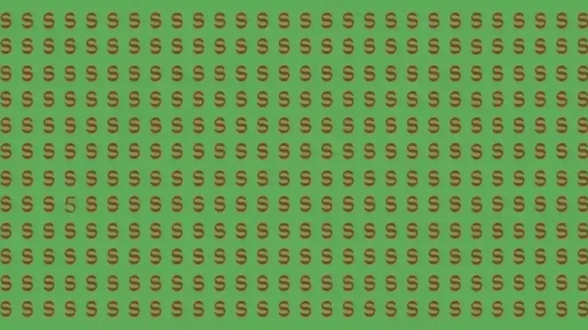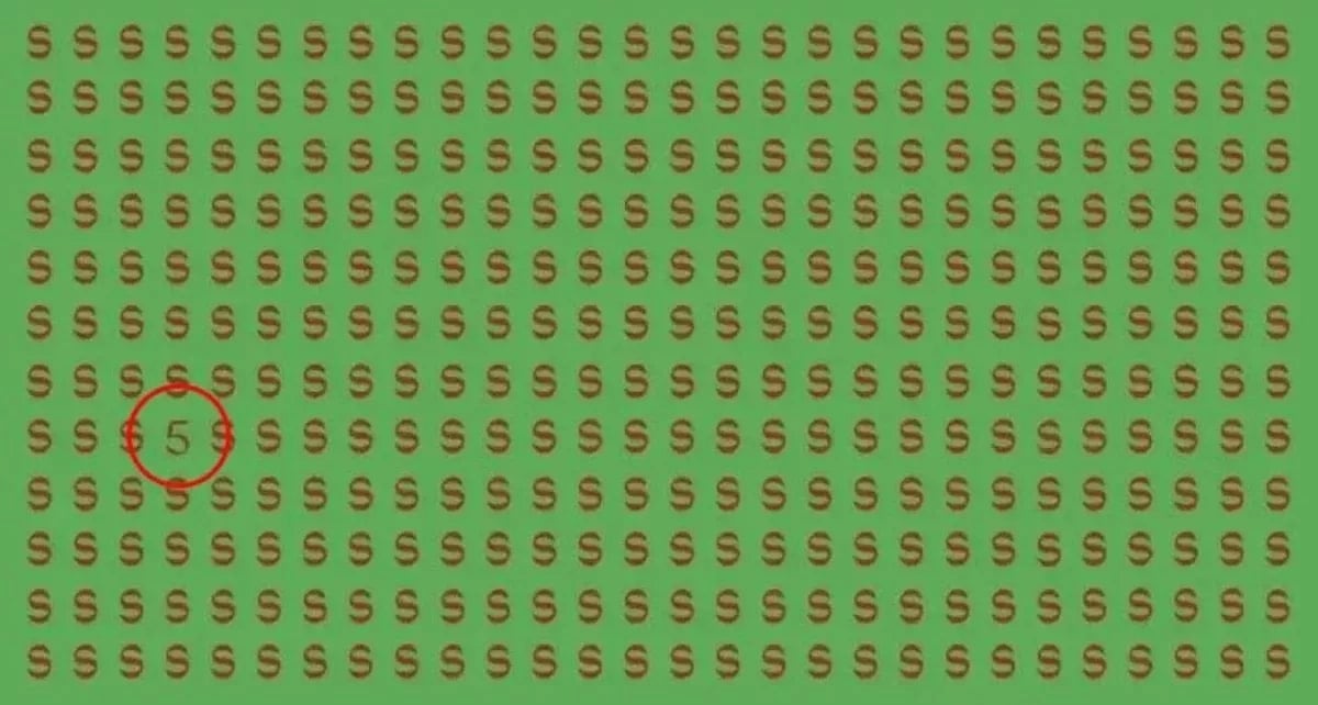 Har du någonsin stirrat på ett mönster så länge att det började röra på sig? Den här bilden utnyttjar precis den typen av perceptuell trötthet. Vid första anblicken ser du bara ett oändligt fält av röda bokstäver ’S’ mot en grön bakgrund. Uppgiften är enkel att förstå, men svår att utföra: hitta det enda numret som är gömt i mönstret. Många klarar det inte på 10 sekunder, vilket gör det till ett utmärkt test av din visuella uthållighet och mönsterigenkänning.