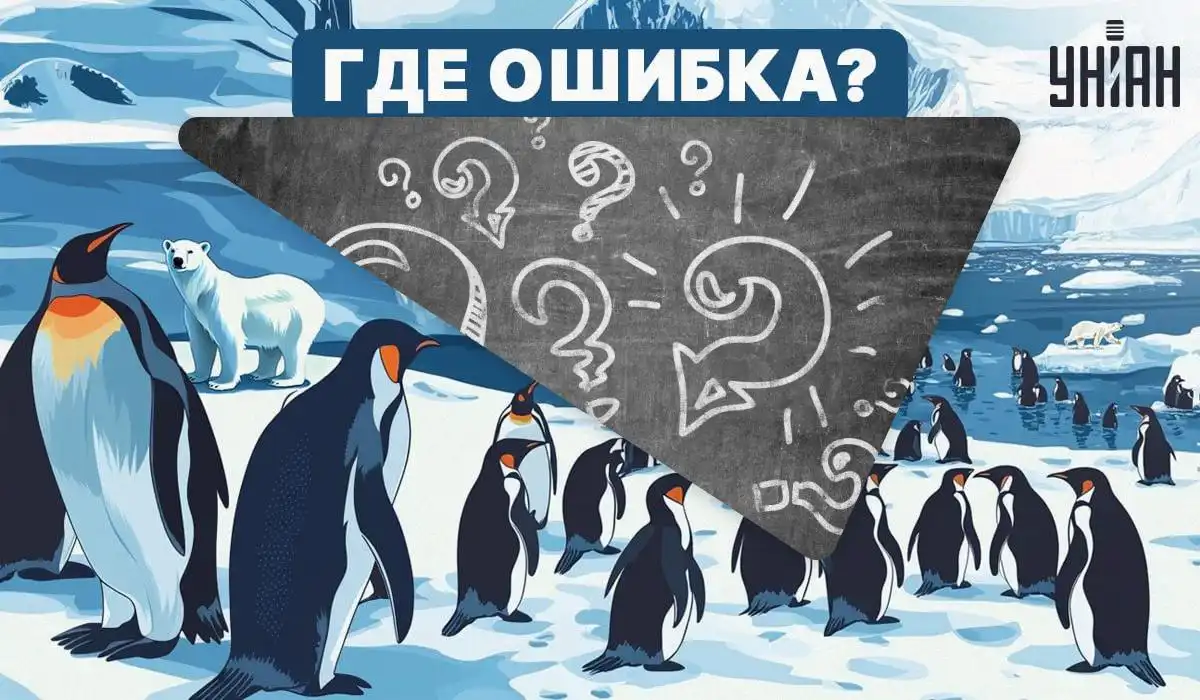 Pingviner är invånare på Sydpolen (Antarktis), medan isbjörnar uteslutande lever vid Nordpolen (Arktis). De två djuren är separerade av ekvatorn och hela jordklotet. Att se dem tillsammans på en isflak är en ren fantasi, ett misstag i perceptionen av den som skapade bilden. Lösningen ligger alltså inte i att hitta en visuell defekt, utan i att känna igen en felaktig kombination av element från verkligheten.