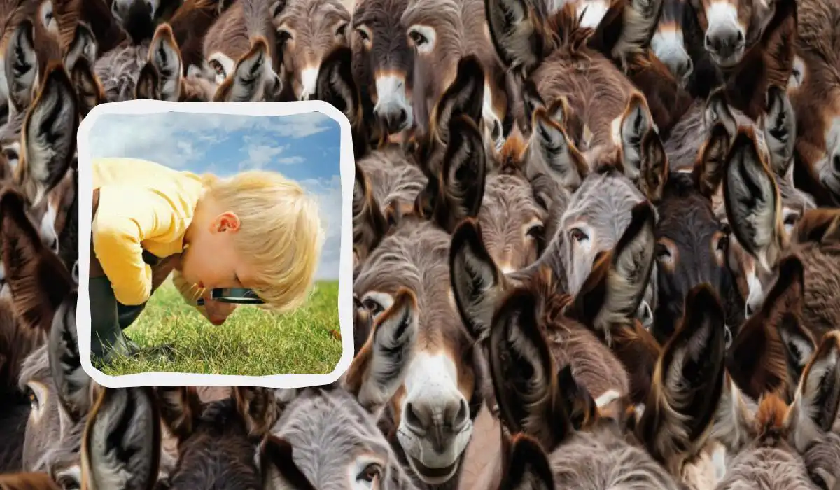Om du fortfarande är fast, här är lösningen. Tjuren är inte gömd i en vrå. Han står mitt i flocken, men hans huvudform är annorlunda. Medan åsnor har karakteristiskt långa, spetsiga öron och ett smalare huvud, har tjuren kortare, rundare öron som pekar åt sidan och ett bredare, kraftfullare huvud. Om du tittar på bilden ovan igen, hittar du ett djur med just dessa drag – det är bedragaren. Den vanligaste felsyn är att leta efter horn, men i denna illusion är det huvudets kontur som avslöjar honom.