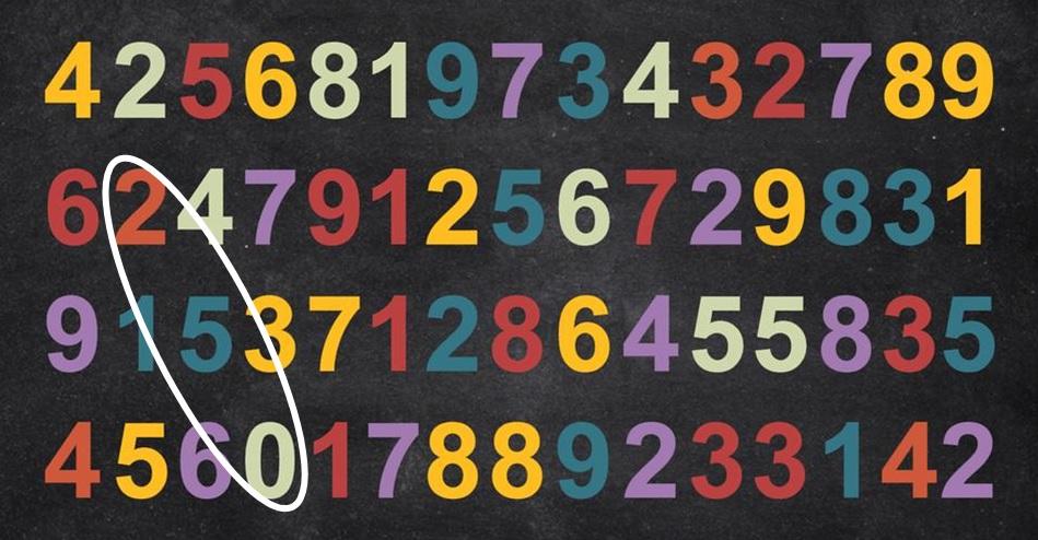 Den unika nollan finns i den högra kolumnen, några rader ner under de siffror som bildar ”2” och ”5”.
