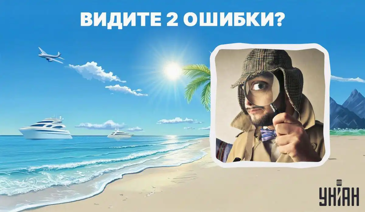 På denna idylliska strandbild döljer sig två omöjliga fel som bryter mot naturens lagar. Nyckeln till lösningen ligger i att noggrant analysera ljusets och skuggornas beteende samt himlakropparnas position.