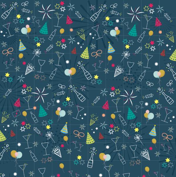 I ett festligt kaos av nyårsdekorationer och glitter gömmer sig ett ensamt spelkort. Dess kanter och färgton gör det till en utmaning att upptäcka bland alla detaljer. Nyckeln är att söka efter något som bryter mot det omgivande mönstret.