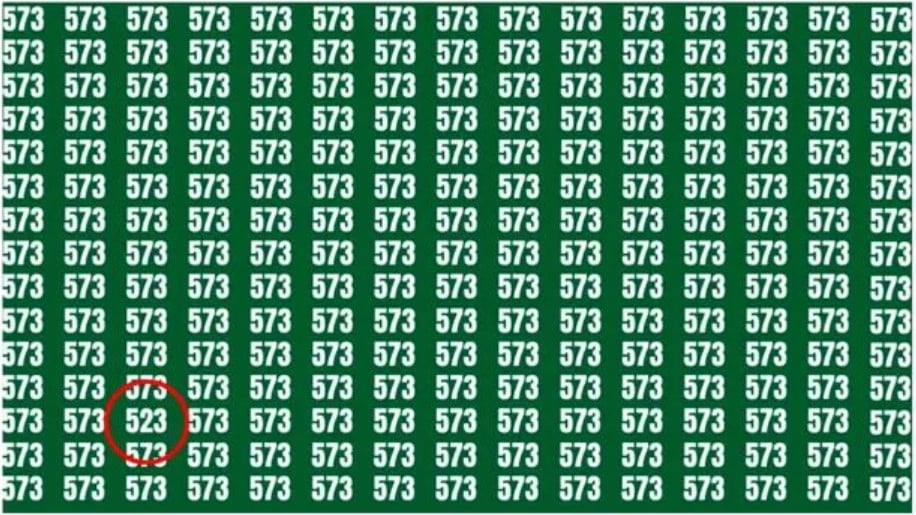 I ett hav av siffror 573 döljer sig en enda 523. Kan du hitta den på bara 18 sekunder? Nyckeln är att inte stirra på helheten, utan att systematiskt skanna raderna.