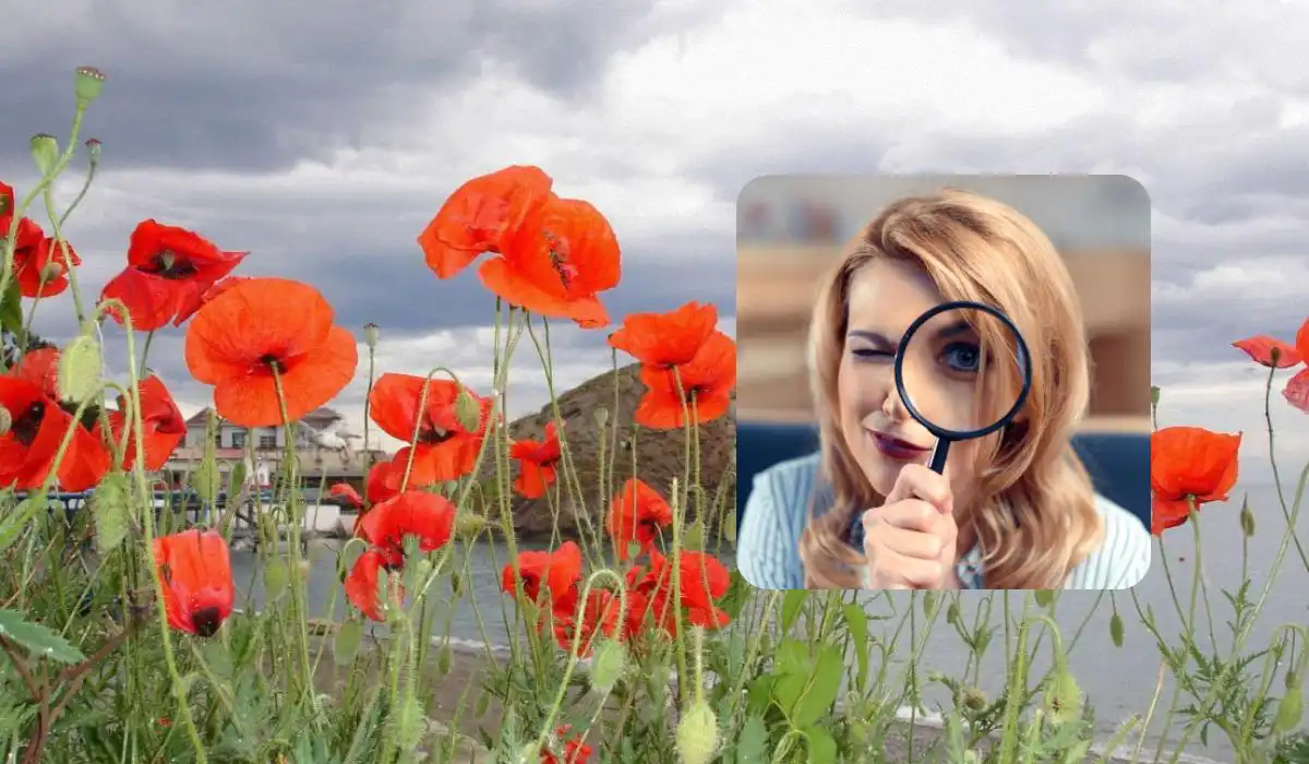 Där, nästan i mitten av det vänstra kanten, kan du se fågelns huvud och näbb vända åt vänster. Kroppen smälter samman med bladen, men huvudets form och det svarta ögat bryter mot vallmornas släta, runda former. När du väl ser det, blir det omöjligt att *inte* se det. Det är den där ”Aha!”-upplevelsen som gör dessa pussel så beroendeframkallande.