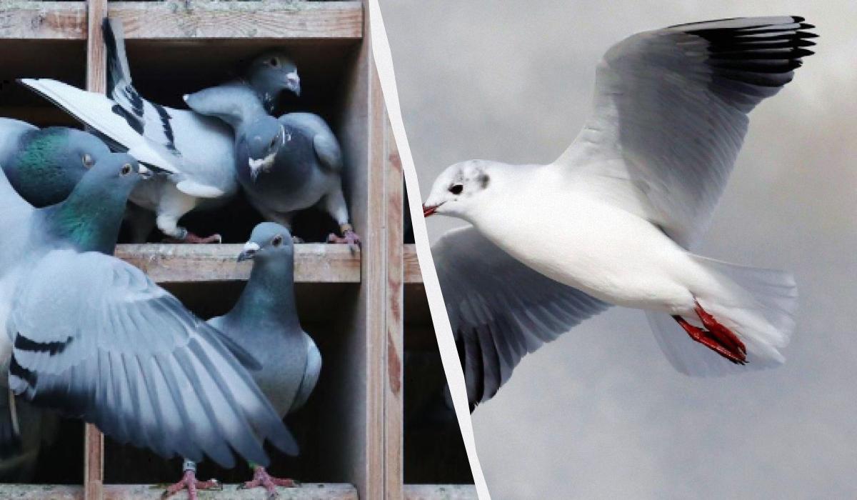 Ledtråd 1: Titta inte för hårt på varje enskild fågel. Fokusera istället på formerna och silhuetterna. Duvan har en annorlunda kroppsbyggnad jämfört med de flesta andra fåglar i bilden.
