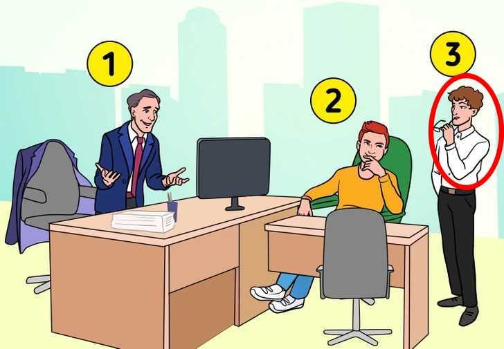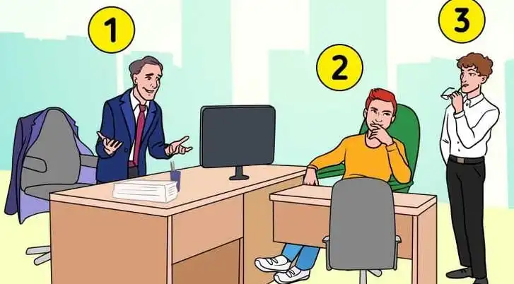 Detta är en klassisk observationsgåta där svaret ofta ligger i de små, oviktiga detaljerna. För att identifiera chefen bland de tre männen måste du titta bortom det uppenbara och leta efter subtila ledtrådar om arbetsplatsdynamik och vanor.