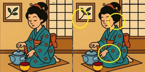 Kan du hitta de tre små skillnaderna mellan två nästan identiska bilder av en kvinna som dricker te? Tiden tickar – du har bara 33 sekunder på dig. Nyckeln är att systematiskt skanna bilderna, inte bara titta.