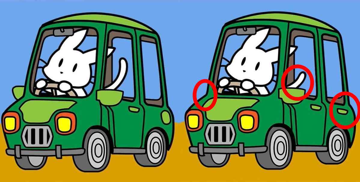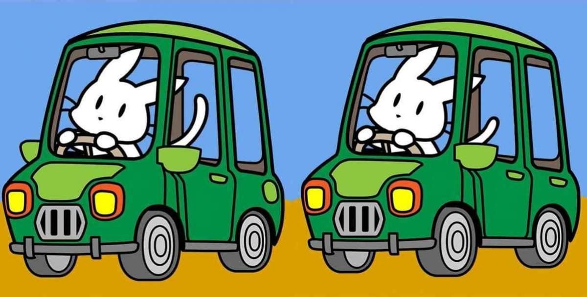 Kan du hitta de tre små detaljerna som skiljer dessa två bilder åt, där en kanin glatt kör sin bil? Tiden tickar, och lösningen ligger ofta i att inte stirra sig blind på helheten, utan att systematiskt skanna av bilden del för del.