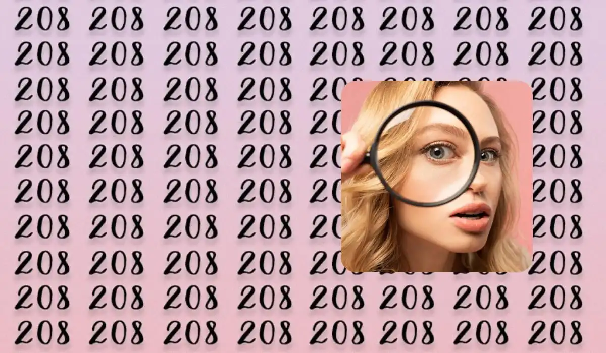 Kan du hitta det enda numret som skiljer sig bland raderna av 208? Utmaningen ligger i att siffrorna 3 och 8 är utformade för att vara förvillande lika, vilket kräver en kombination av skarp synskärpa och tålamod för att lösa pusslet.