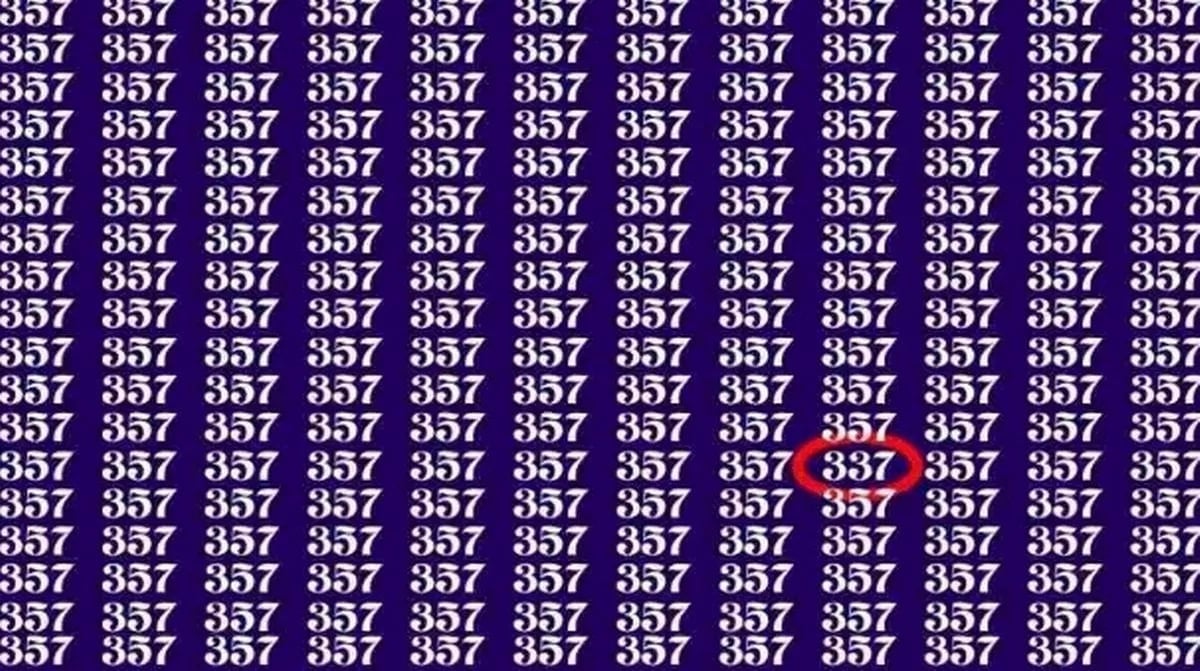 I ett hav av siffror 357 gömmer sig en enda 337. Uppgiften är ett utmärkt test på uppmärksamhet och visuell uthållighet. Nyckeln är att inte låta mönstret lura dig – den sökta siffran är där, men den smälter perfekt in.