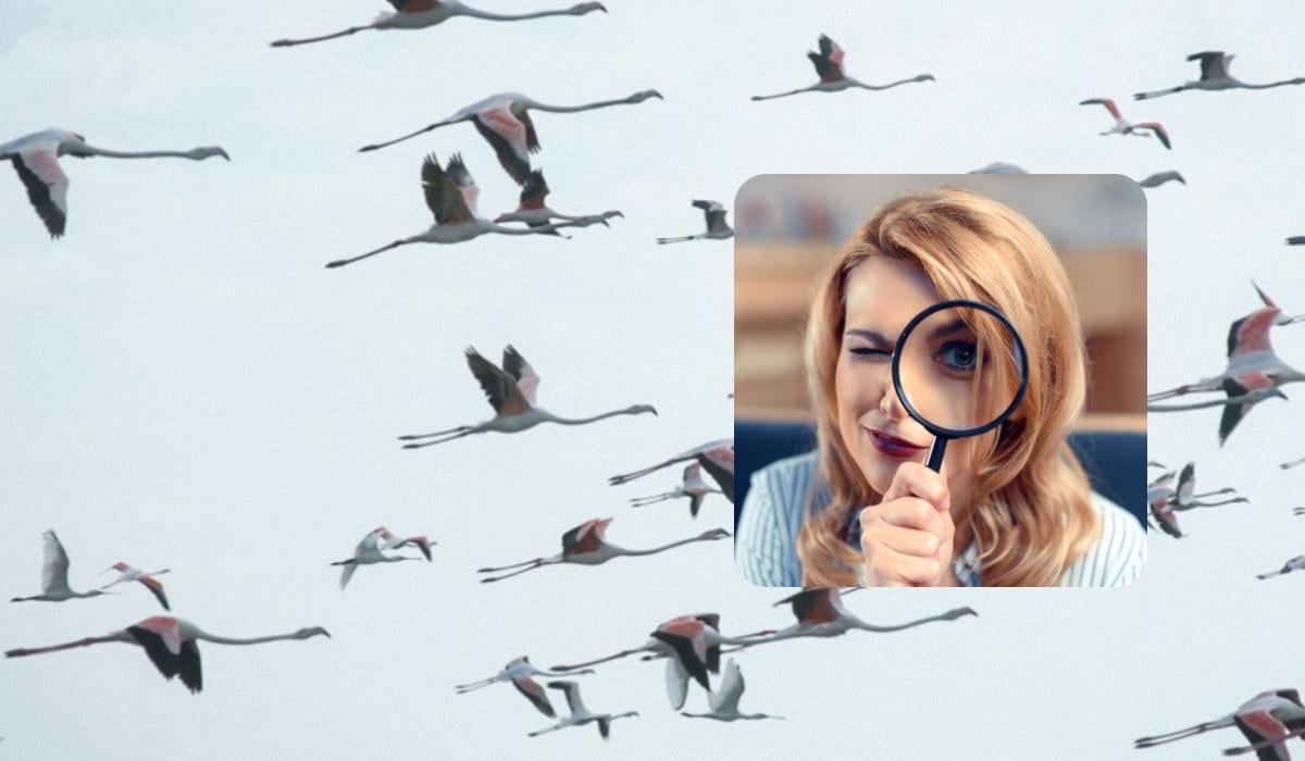 I en stor flock rosa flamingor gömmer sig en ensam stork. Kan du hitta den på bara sex sekunder? Nyckeln är att leta efter något som bryter mot det rosa mönstret och den välbekanta formen.