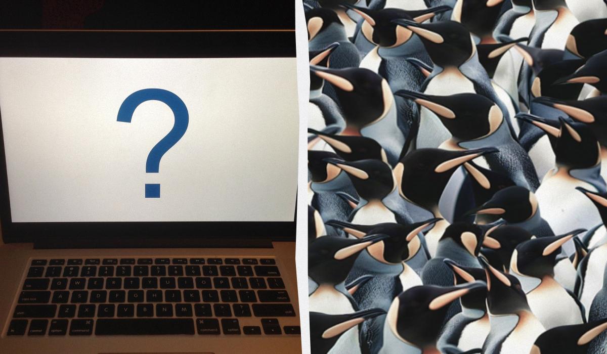 Bland en svärm av svartvita pingviner gömmer sig en annan fågel – en skata. Utmaningen ligger i att genomskåda likheten och hitta det subtila avvikande mönstret. Nyckeln är att inte bara titta på färgen, utan på formen och placeringen av de vita partierna.