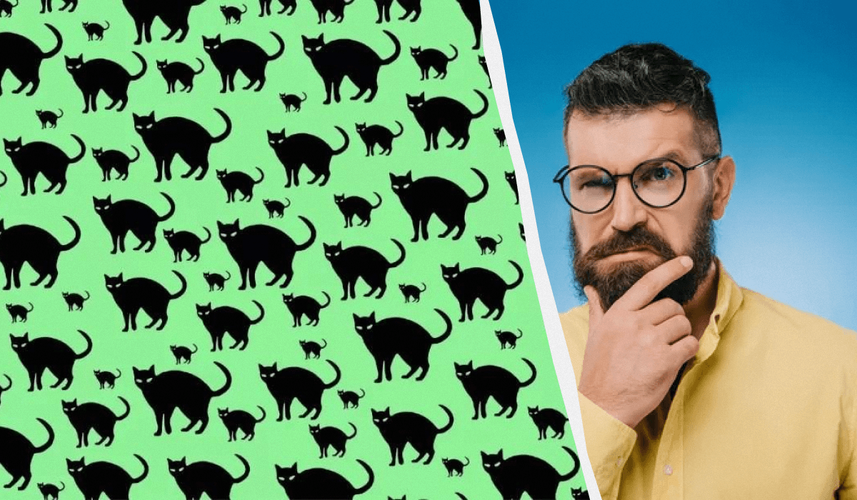 En gnagare är tryggt gömd i en svärm av mörka katter, och utmaningen är att hitta den på bara 8 sekunder. Nyckeln är att släppa det uppenbara och leta efter en form som bryter mot det kaotiska mönstret.
