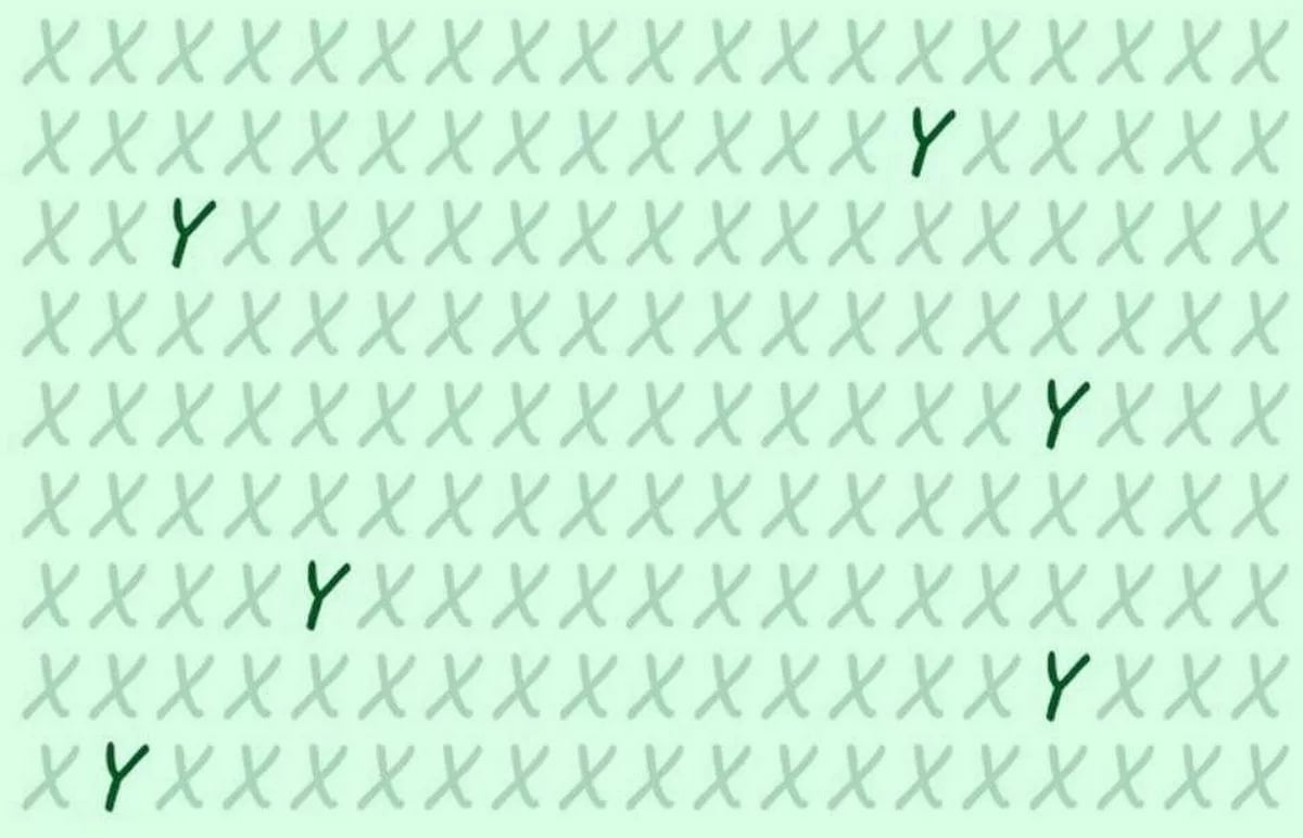 Det är en klassisk test av din observationsförmåga. Föreställ dig att du sitter med en tidning och plötsligt får se en tävling: ”Hitta de gömda Y:na och vinna!” Du tittar på en stor rektangel fylld med bokstaven X, rad efter rad. Det ser ut som statiskt brus på en gammal TV. Men någonstans i detta monotona landskap gömmer sig sex stycken bokstaven Y. Tiden tickar – du har bara 13 sekunder på dig. Känns det omöjligt? Det är precis vad som gör det till en riktig hjärngympa för den som vill testa sin fokus och visuella skärpa.