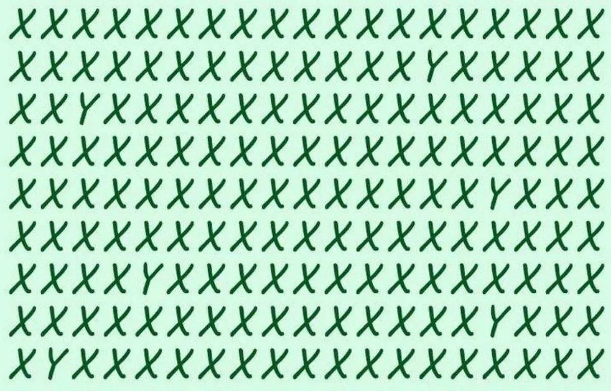 Kan du hitta de sex dolda bokstäverna Y i ett hav av X på bara 13 sekunder? Den här visuella utmaningen testar din uppmärksamhet och förmåga att bryta ett monotont mönster. Nyckeln är att inte stirra, utan låta blicken svepa över raderna på ett specifikt sätt.
