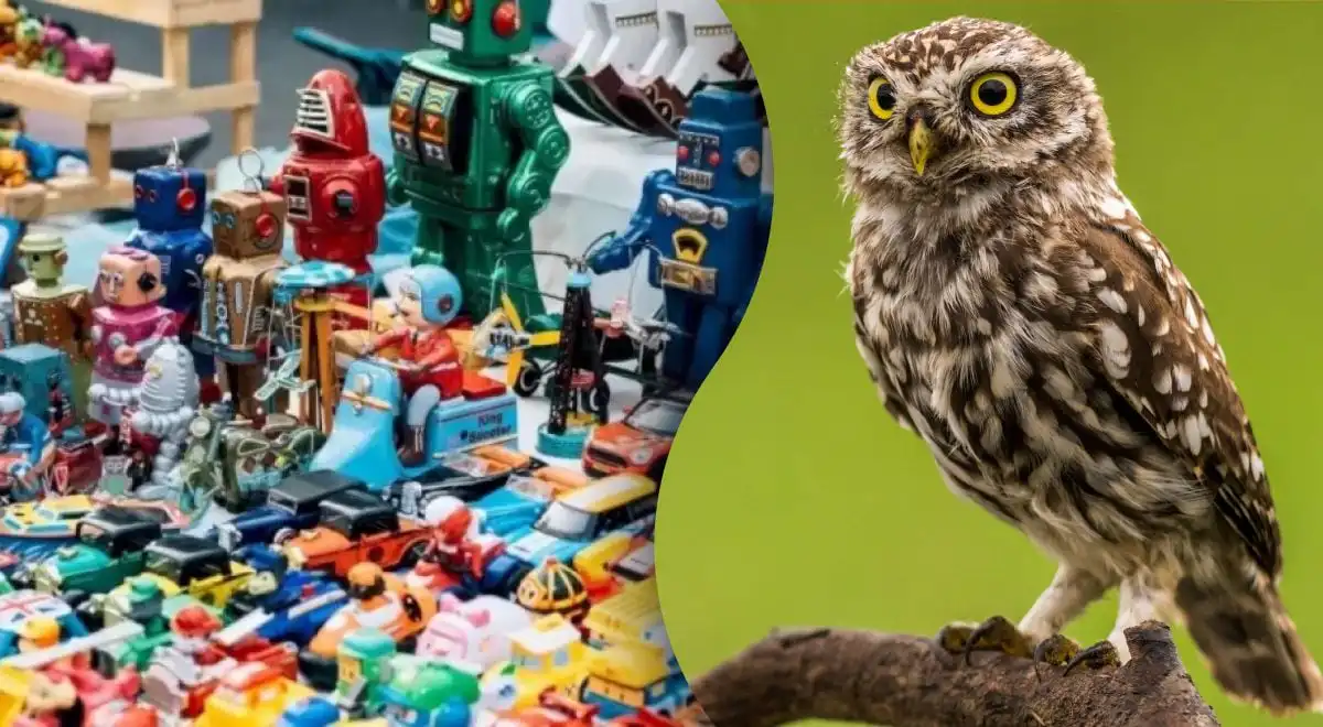 Innan du ger dig ut på jakt, fundera på detta: Vilken typ av leksak letar du efter? En uggla har en väldigt specifik siluett med stort huvud och kort kropp, vilket skiljer sig radikalt från de mekaniska, kantiga formerna hos de flesta andra leksaker i bilden. Det är denna avvikelse från mönstret du måste fånga upp.