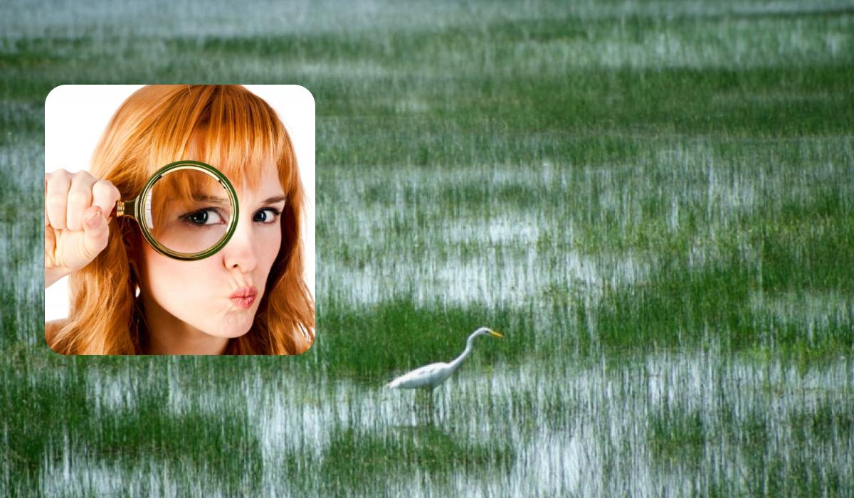 Framför dig ligger en fridfull bild från Donaus biosfärområde, där en ensam trana står på ett grönt fält. Landskapet är vackert, men uppgiften är specifik: bland all denna grönska har en vit anka gömt sig. Du har bara nio sekunder på dig att lokalisera den. Det här är inte bara en lek, det är ett träningspass för dina observationstekniker. Tiden tickar – är du redo?