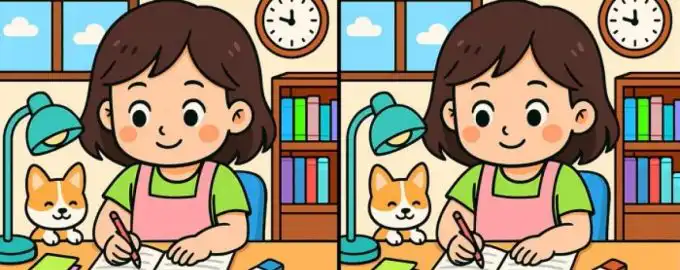 Kan du hitta de tre subtila skillnaderna mellan två bilder av en student vid sitt skrivbord på bara 51 sekunder? Den här klassiska typen av visuellt pussel testar.