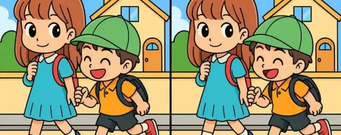 Kan du hitta de tre små skillnaderna mellan två nästan identiska bilder av barn på väg till skolan? Tiden tickar – 59 sekunder på dig! Nyckeln är att...