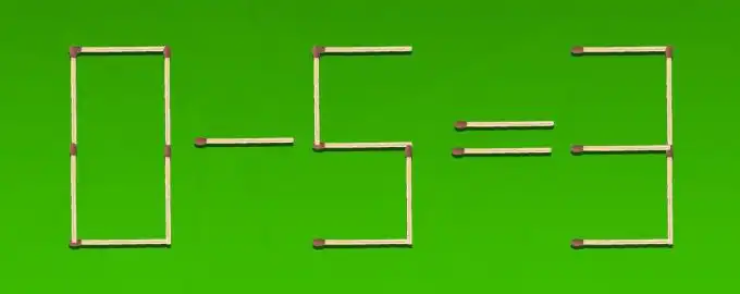 Den här tändsticksgåtan utmanar din förmåga att se siffror som former. För att lösa den felaktiga ekvationen 0-5=3 måste du flytta exakt två tändstickor.