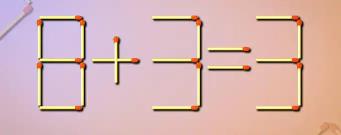 Det här är ett klassiskt tändstickspussel där du måste rätta till den felaktiga ekvationen 8+3=3 genom att bara flytta en enda tändsticka.