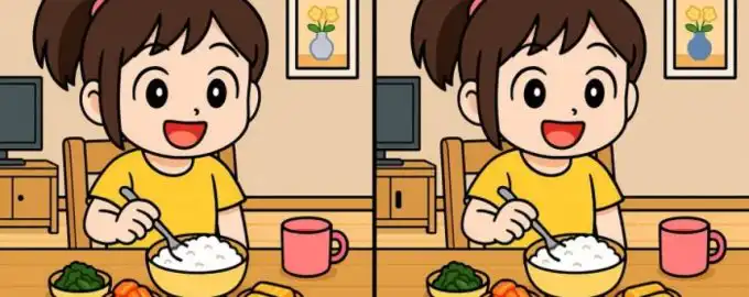 Kan du hitta de tre små skillnaderna mellan två till synes identiska bilder av en flicka vid ett middagsbord? Utmaningen ligger i att övervinna det första intrycket av.