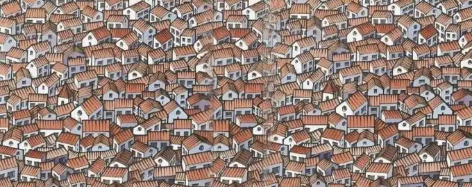 En katt har perfekt kamouflerat sig bland tak och väggar i en by av små hus. För att hitta den måste du titta bortom det uppenbara och leta...
